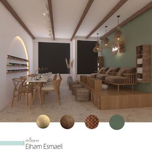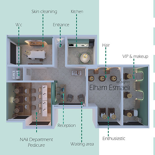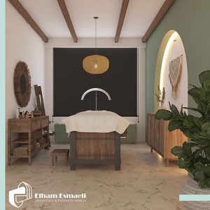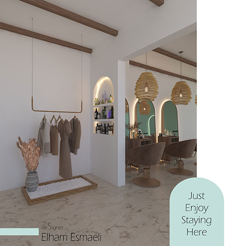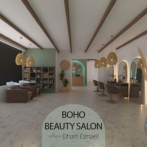 پروژه حاضر شامل فضاهای پذیرش، انتظار، فروش محصولات زیبایی و آرایشی، ناخن(مانیکور، پدیکور، کاشت ناخن)، پاکسازی پوست و آروماتراپی، مو، میکاپ و vip عروس می باشد که کاملا از تمامی آیتم های سبک بوهو در تمامی بخش ها استفاده نمودیم.