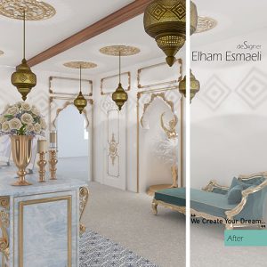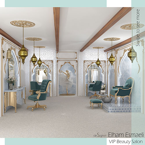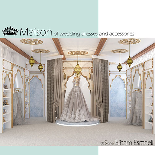 پروژه حاضر شامل یک سالن اختصاصی vip عروس و یک سالن اختصاصی برای مزون لباس عروس و ملزومات آن می باشد که تمامی خدمات و نیازهای یک بانو را برای مراسم عروسی تامین نماید. کارفرما دغدغه این موضوع را داشت تا طراحی بروز و لوکس مطابق با نوع مخاطبین خود داشته باشد. از این رو سبک مراکشی به عنوان یکی از سبک های لوکس و گران برای این پروژه انتخاب گردید.